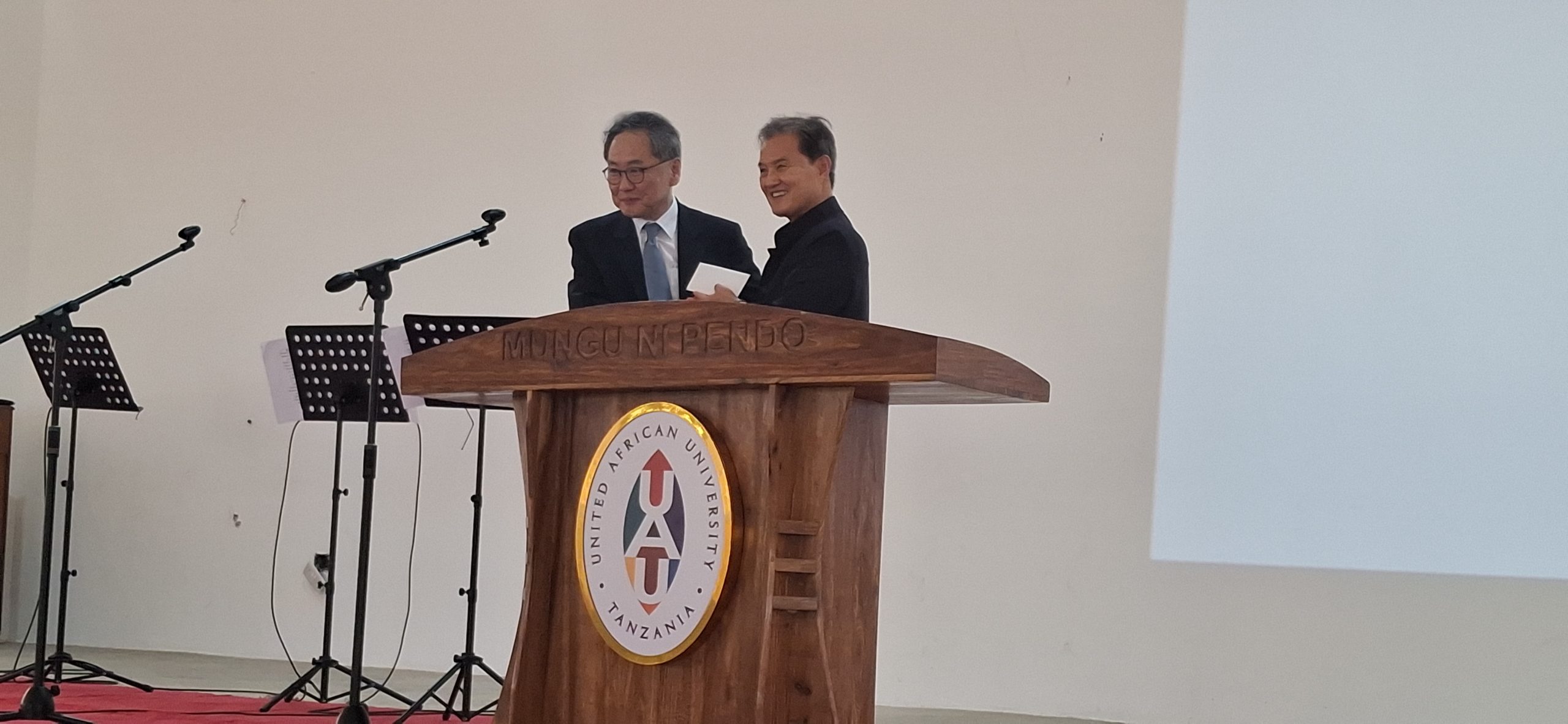 Rev. Jung Seok Kim, Presiding Bishop of the Korean Methodist Church and senior pastor of Kwanglim Church, generously donated $2,000 in scholarships to support students facing financial difficulties. His donation came during his visit to the university alongside the heads of major Korean denominational assemblies. The university administration, through its scholarship committee, identified students with outstanding academic performance who were unable to pay their tuition for the semester due to financial hardship. As a result, eight students—Paul Philip Rimbani, Mawazo Ibrahim Laita, Peter Godfrey Rocks, Rashid Juma Shabani, Norbert H. Kira,